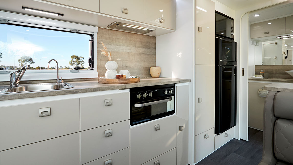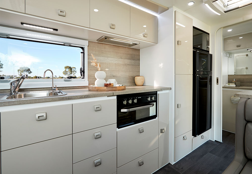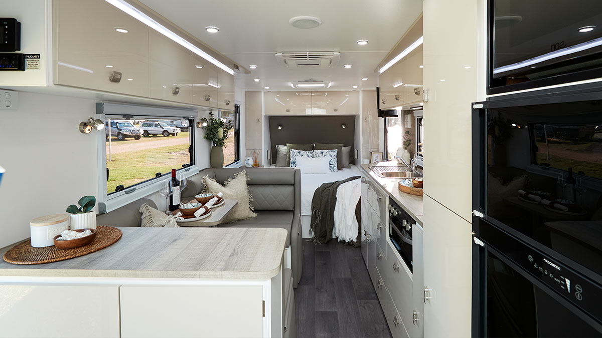 Combining modern comfort and convenience, the Forerunner features stylish interiors, versatile sleeping arrangements, a fully equipped kitchen and bathroom, and entertainment systems, creating a relaxed, self-sufficient, and enjoyable travelling experience.