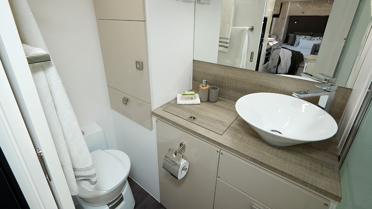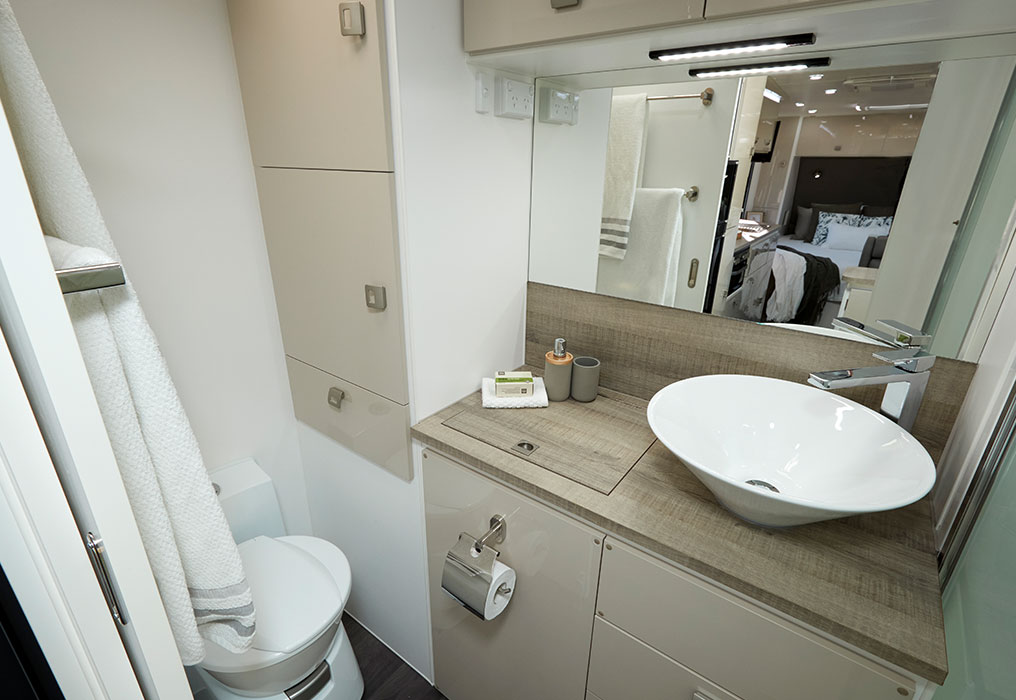The Forerunner has a separate shower and toilet, complete with a glass shower door, modern fittings, quality fixtures, and a practical layout designed to maximise space, comfort, and privacy.