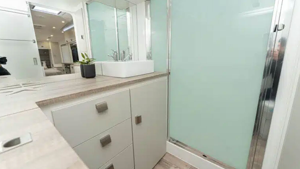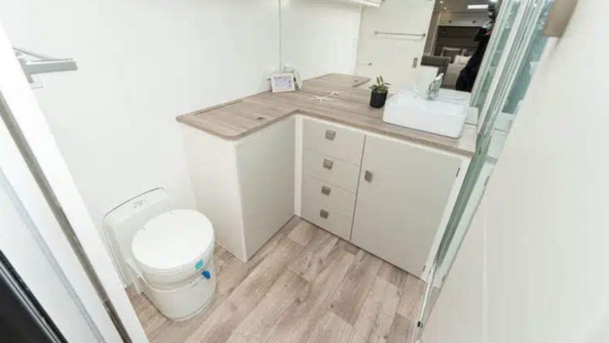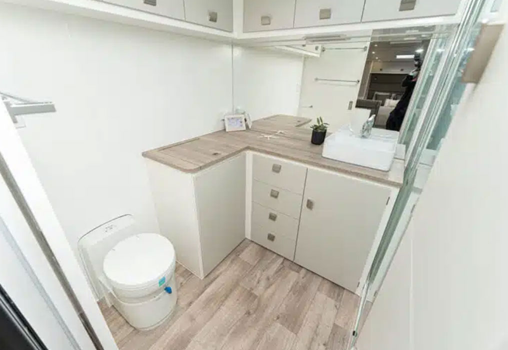 The Getaway series boasts a full ensuite—smaller models have a combined shower/toilet, while larger models have a separate shower and toilet for easier everyday use, providing privacy, convenience, and practical functionality for extended trips or overnight stays.
