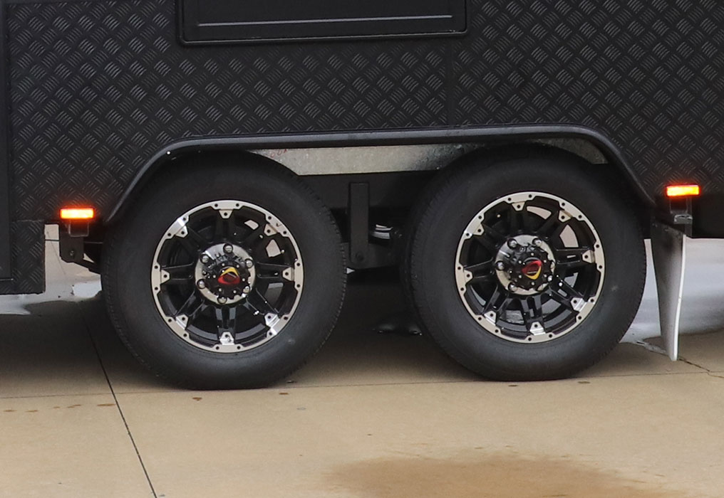 This model's alloy wheels are engineered for strength, providing reliable performance on the tarmac and off-road while enhancing stability, towing confidence, and safety.