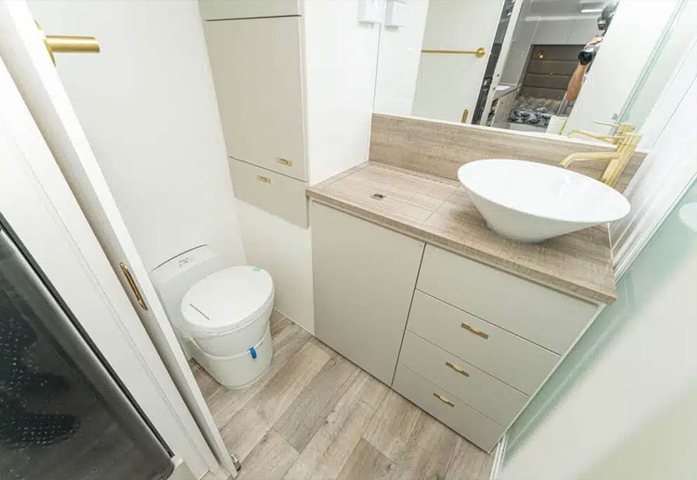 Odyssey models feature a cassette toilet plus a separate shower—it's simple, convenient, and makes life on the road easier, keeping bathroom routines hassle-free and comfortable for the whole crew.