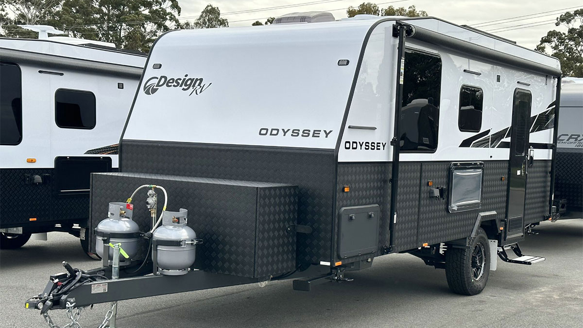 The Odyssey caravan is Design RV's entry-level semi-off-road model. It combines durability with all the home comforts, making it ideal for families, couples, and thrill-seekers. Flexible sleeping arrangements, including bunk beds, allow everyone to have a cosy spot to rest. Interiors include a fully equipped kitchen, a lounge area, and clever design features that make life on the road super-comfortable. Whether you're venturing off the beaten track or cruising along highways, the Odyssey delivers the freedom to explore without compromising on comfort. It's the perfect companion for those after adventure and relaxation, all in one stylish package. With ample storage, reverse cycle air conditioning, and robust construction engineered for long journeys, it inspires confidence on every trip, so you can roam further and stay longer.