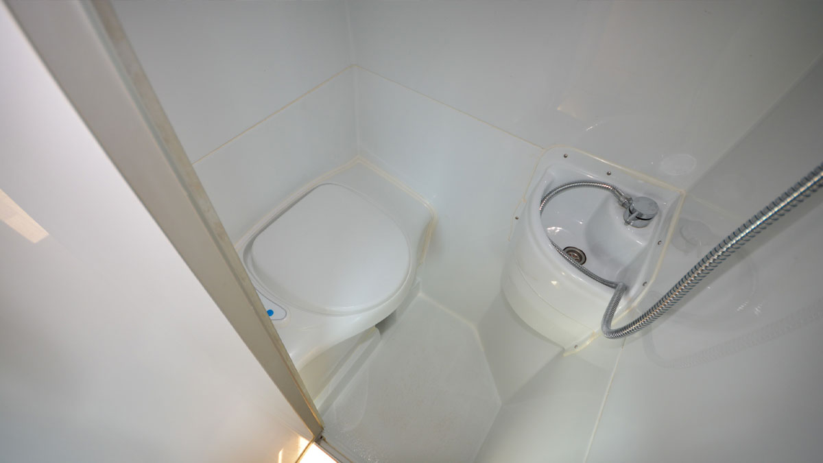 The shower/toilet is compact and functional with a cassette toilet and a flexible shower hose, allowing you to enjoy a shower after a swim or an action-packed day.