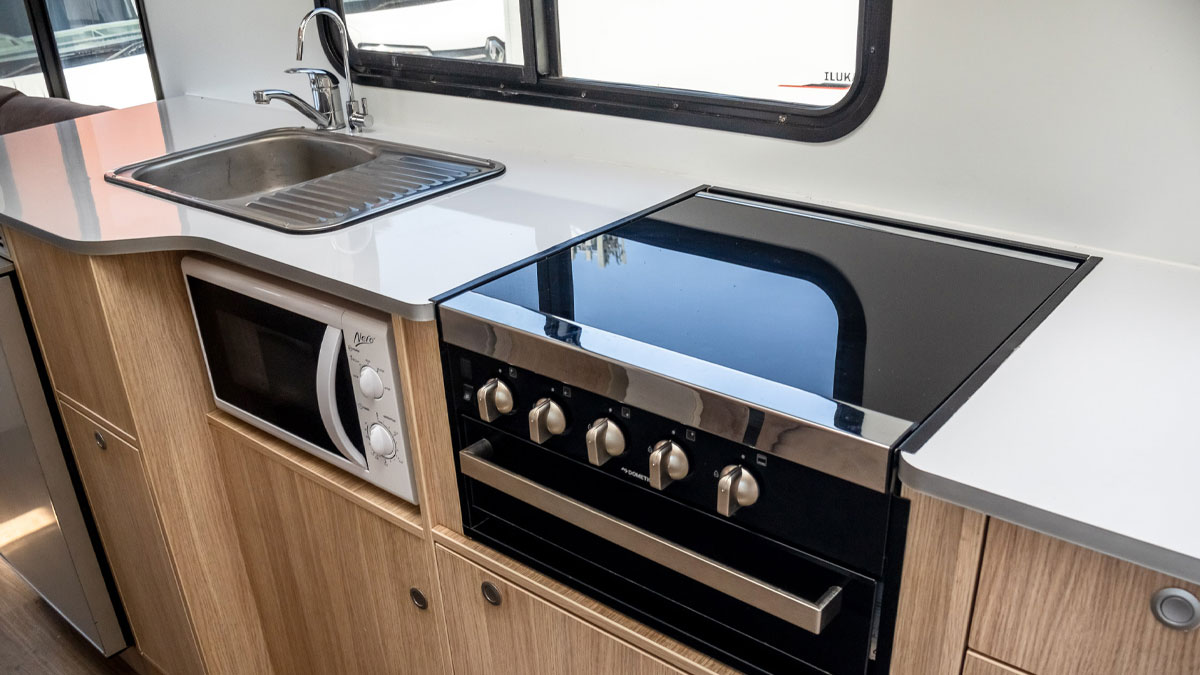 A 110L fridge/freezer will keep everything fresh and ready for cooking up a storm, with ice cubes ready to go. Gas and electric stove hobs will also give you no-stress meal flexibility.