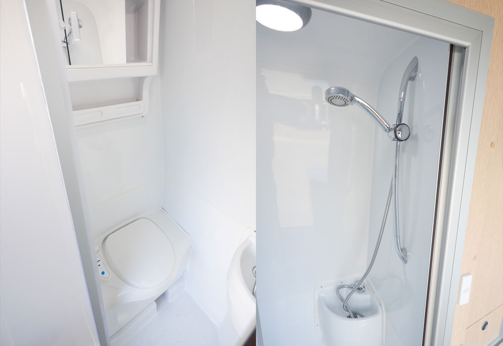 The compact shower/toilet has a cassette toilet and a flexible shower hose in a space-saving design, so there'll be no need to rely on public toilets. It's perfect for hygienic and practical use while travelling on the road.