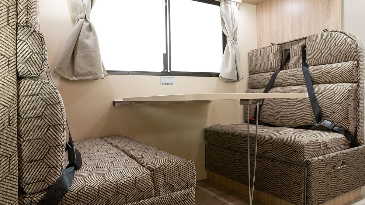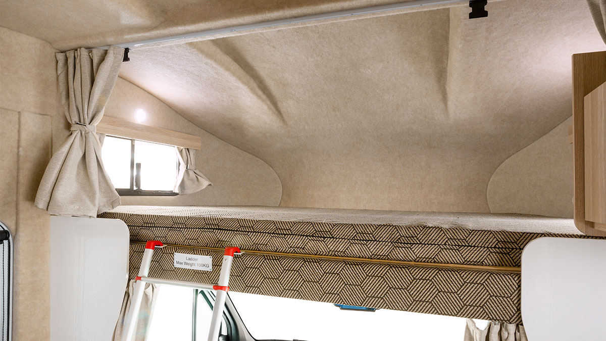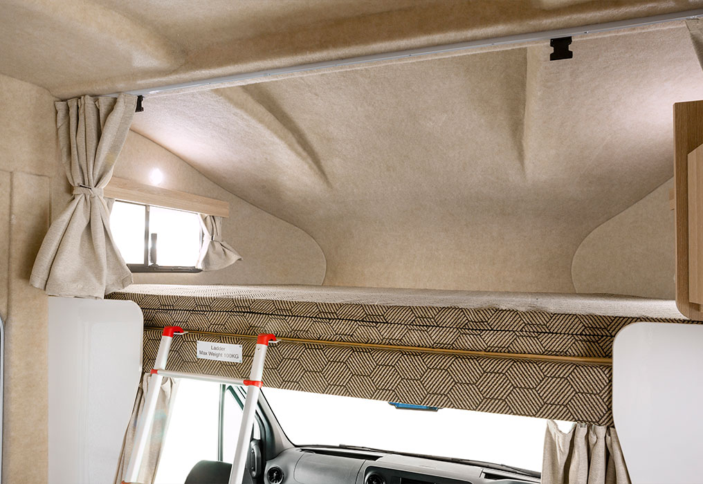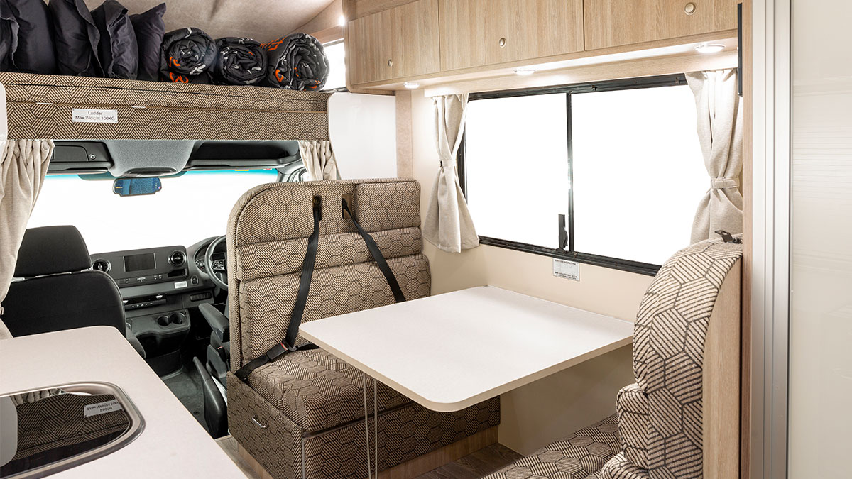 The Apollo Euro Deluxe sleeps six in three double beds. The first is over the driver's cabin, one converts from the rear lounge, and the third converts from the front dinette. Flexibility plus!