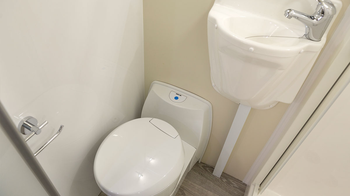 There's nothing better than a hot shower after a day full of activity, and the Euro Deluxe will satisfy! It's equipped with a shower with hot/cold tapware, a basin, and an electric flush toilet.