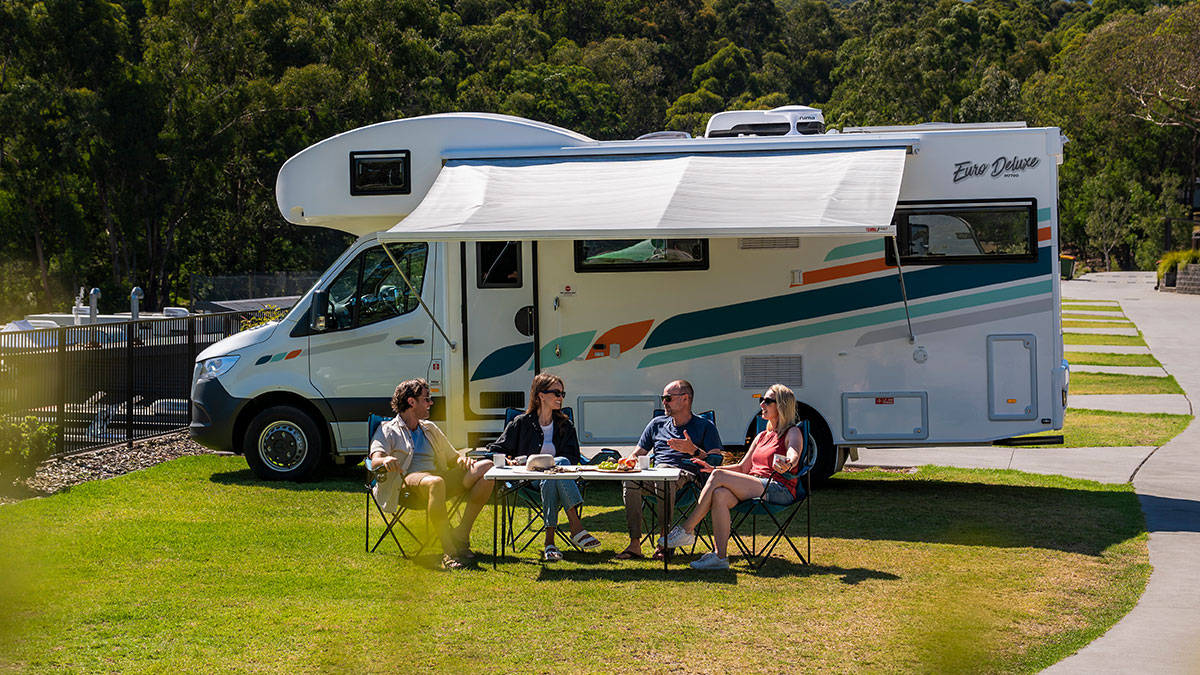 The 6-berth Euro Deluxe combines rugged capability with practical design, built on a reliable Mercedes-Benz Sprinter chassis with a 2.2 L turbo diesel engine. Families will benefit from two child restraint points, and there's heaps of storage, including a tunnel boot and external lockers. An external shower lets everyone wash off after outdoor adventures, and the combination of all of these makes this motorhome ideal for both lengthy trips and weekend getaways.