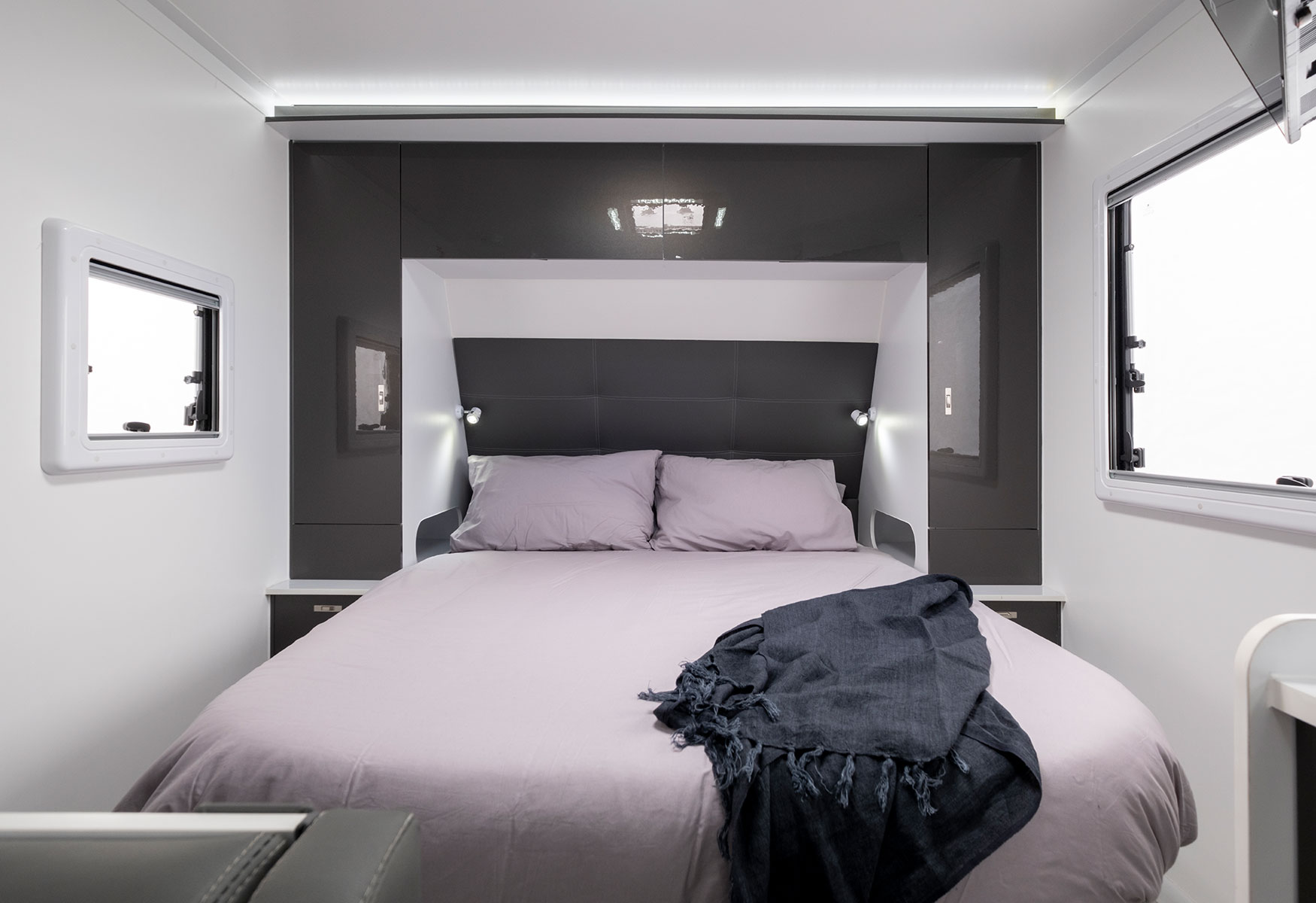 All models include the added luxury of an ensuite with a separate shower and toilet. They also have a vanity, mirror, and roof hatch above the shower with a 12 V fan.