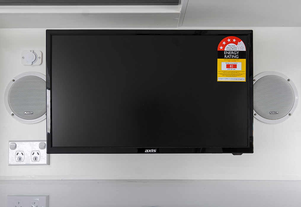 Additional lifestyle extras include a Bluetooth DVD/TV and stereo, a wind-out awning and external shower, a solar panel, a deep-cycle house battery and two 90 L water tanks.